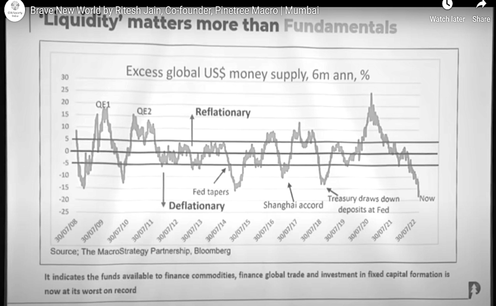 In last few weeks , we have added 6 lac cr of forex reserve though. In the figure on the right , the liquidity is at the lowest level since 2008. The damage you are already seeing around the world markets , its humongous in global assets, FAANG was valued at 11 trillion dollars in Nov, 2021, Today its 5.7 trillion dollars. The bitcoin and dogecoins were at their peaks in month of July in 2021.